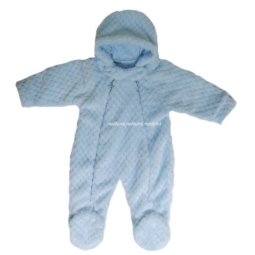Комбинезон с капюшоном, с закрытыми ножками, спереди на двух молниях по всей длине.