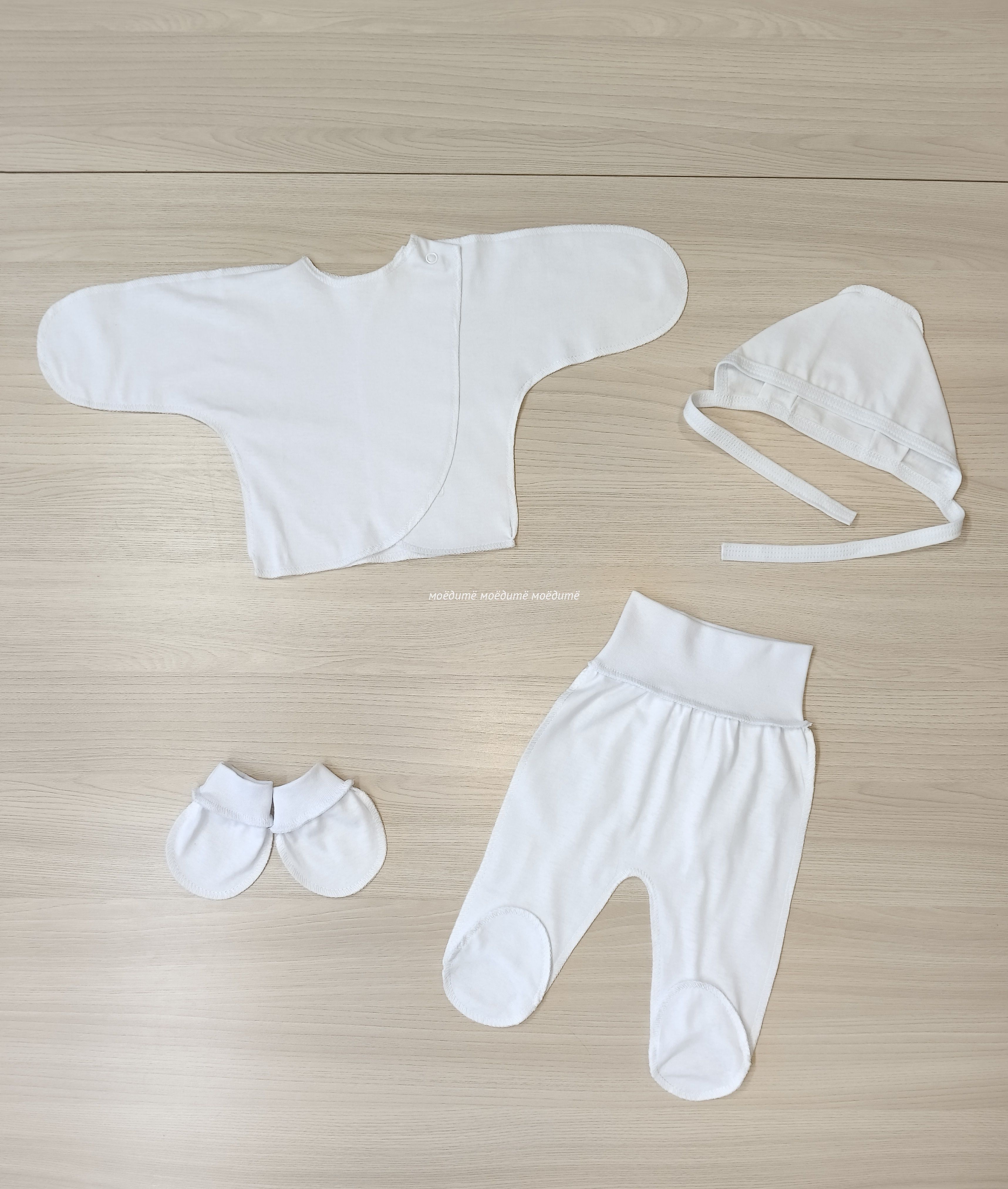"МоёДитё" комплект на выписку из 4-х предметов белый КП025 "Магнолия"