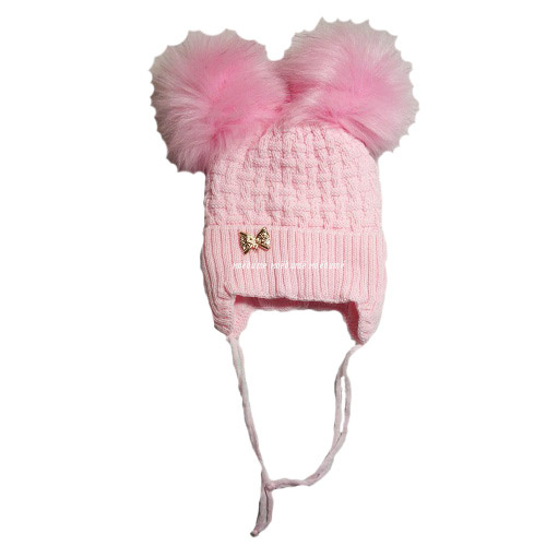 Шапка на девочку  (Велсофт) с двумя помпонами