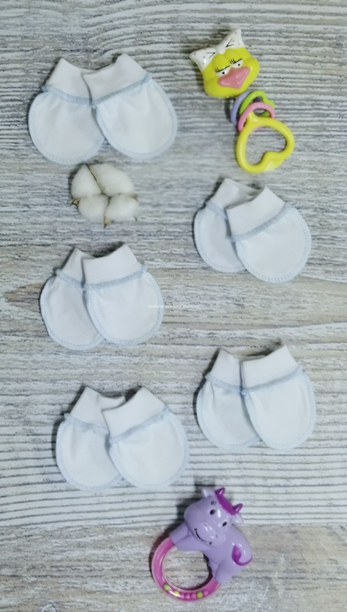 "МоёДитё" царапки кулирка белые с голубым ЦК018 "Гардения"